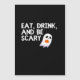 Modern Halloween-design uppbyggd kring ett djärvt ”Ät, drick och var läskig”-tema.