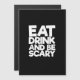 Retroklassisk “Ät drick och var skum” Halloween-design med nostalgisk charm.