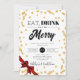 Elegant jul, Party/Julfest/Vinterpartsinbjudan med typografi av typen "Eat, Drink & Be Merry" och Glitter motif i Guld. Underbar till använda för Corporate Middag party, Winter bollar och galas, svarta slips/händelser och Office party.