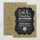 Ät, Drick & Var Gift Guld Glitter Bröllopsmottagning Inbjudan