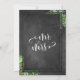 Denna charmiga bröllopsmottagning eller mottagningsfest-inbjudan har en svart tavla-bakgrund samt en badge med ram som överlagras av en svart tavla, mellan vilka jag har placerat oordnade buketter av akvarellgrönska. Med en elegant, svängig modern scriptfont har jag återgett orden "äta, dricka och vara gift" högst upp, som en rubrik till dina egna personliga detaljer. Med samma "eleganta" stil har jag placerat en grafik som läser "mr & mrs" på baksidan. Alla lager lades till separat och lämnades olåsta så att du kan ändra vad du vill. // 57 //