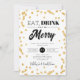 Elegant jul, Party/Julfest/Vinterpartsinbjudan med typografi av typen "Eat, Drink & Be Merry" och Glitter motif i Guld. Underbar till använda för Corporate Middag party, Winter bollar och galas, svarta slips/händelser och Office party.