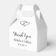 Ät dryck och gift dig med bröllopsaffär. Cute DIY-bröllopsfesten föredrar en presentidé för gästerna. Späda formade lådor för trikårer eller hemgjorda godis. Trendigets malldesign med snyggtens skripttypografi plus två dubblors förreglande hjärtan. Anpassningsbar tack för ett budskap med namn eller ett monogram av brud och brudgumm plus datum för giftermål. Snyggt party förnödenheter och tillbehör till elegant för att tacka för att du kommit hit. Roligt för finare glatta bröllop. Det är också trevligt som ge är här för möhippa, brudtärnor, par på bakgården, förlovning eller årsdag. Ändra kvantitet om du vill hämta billigten prist. Svartvit designdel av klasssamlingsuppsättningen. Anpassadets färg bakgrund.