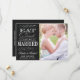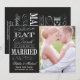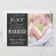 Elegant som är lätt att använda "Spara datum"-fotomallen med orden "Ät dryck och håll dig intryckt." Svart krita och vintage-typografi
