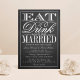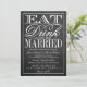 Ät, dryck och vara gift med kalkskiva Bröllop Inbjudningar