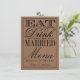 Ät, drick och vara gift med Rustic Kraft Bröllop Menu-kort. VISA MATCHNINGSOBJEKT FÖR DENNA SAMLING