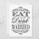 Ät, dryck och vara gift - Vit Bröllop-tecken Inbjudningar