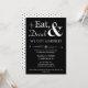 Vänner och familj i inbjudan för att hjälpa dig att fira ditt senaste giftermål med den här funkyn som är vit på svart mat, dricka och vara gift! avslappnad för elopement-festinbjudan, visa ett foto av bruden och brudgummen.