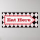 Denna roliga Ät här skylt är en bra väggdekoration för ett kök, matsal, restaurang, 1950-tals tema, retro tema, etc... Designen är från original konst.