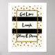 Ät kärlek le skratt lek bön svart guld prickar affisch