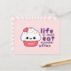 Cute cuptårta med lycklig ansikte och citatet "Livet är kort, ät muffinsar ofta".