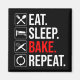 Ät. Sov. Bake. Upprepa. Ett lustigt citat som bakar tillbehör är en underbar gåva till en man, kvinna, tonåringar och barn som kärlek ska baka i köket. Även perfekt för en bageriarbetare eller en bageriarbetare. Om du är en hembåt, kärlek, kulinariska konst och kärlek för att förbereda utsökt bröd, kakor, muffins, kakor eller muffinsar i ugnen, så är den här humoristiska designen till dig.