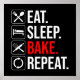 Ät. Sov. Bake. Upprepa. Ett lustigt citat som bakar tillbehör är en underbar gåva till en man, kvinna, tonåringar och barn som kärlek ska baka i köket. Även perfekt för en bageriarbetare eller en bageriarbetare. Om du är en hembåt, kärlek, kulinariska konst och kärlek för att förbereda utsökt bröd, kakor, muffins, kakor eller muffinsar i ugnen, så är den här humoristiska designen till dig.