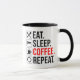 Ät. Sov. Kaffe. Upprepa. Det här märkliga kaffetillbehöret är en underbar gåva till ett kaffe älskare. Perfekt för manar och kvinnliga kaffedrickare och kaffemissbrukare som har flera mugg eller kopp kaffe på morgonen. Ska du kärlek dricka kaffe, cappuccino, lattes eller espresso med frukost? Är du beroende för kaffe och koffein? Om du inte kan gå en dag utan kaffe, så är det här för dig!
