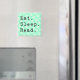 En matnings-, sömn- och lästtypsritning för bok älskare mot anpassadets polka-punktbakgrund. Välj "anpassa" om du vill göra ändringar.