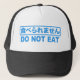 Denna roliga design skulle översätts exaktare som: Kan inte ätas, men den översätts som: Äta inte. Denna text togs från faktisk mat som paketerar i Japan.