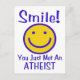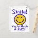 Lägg ett mänskligt ansikte på Atheism med en skarp gult ansikte i blått med blått brev som säger: "Smile! Du träffade just en ATHEIST."