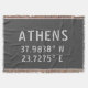 Atens grekiska latitud- och longitud karta-koordinater i det moderna stadstecknet på mörkens grått-bakgrund
