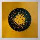 Detta slående abstrakta konstverk utforskar temat återfödelse genom en kraftfull cirkulär komposition och en raffinerad, symbolisk färgpalett. En djup, mörk ring omger en lysande gyllene kärna, prydd med spridda prickar som känns som frön, stjärnor eller partiklar i rörelse. Kontrasten mellan den strålande mitten och det mörkare yttre fältet antyder uppkomst, förvandling och den tysta kraften av nya begynnelser som formas inifrån.