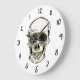 Siffrorna på klockan-ansikte är omvända! Den mycket förvirrande klockan ansikte har en handdragen bläck-skiss av ett mänskligt skalle som har förbättrats med en aning digitala konsthändelser.