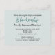 Skicka ut en varning och detaljer för den kommande familjeåterföreningen med detta vykortmeddelande med en akvarell sjöscen. Anpassa alla detaljer på baksidan, ta bort eventuell text eller redigera med hjälp av designverktyget för att välja en typsnittsstil, storlek och färg du gillar. Denna design kan användas för alla kommande speciella evenemangsmeddelanden.