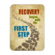 "Återhämtningen börjar med första steget" - Uppmuntra och motivera dig själv och andra att uppnå frihet med detta mäktiga påstående. Används i återhämtnings- och 12-stegsprogram, var fri från beroende och gå en dag i taget mot nykterhet. Design: Stegstenar, det symboliska väg för återhämtning.