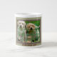 Framade bilder av två roliga valpar på en vit, stöt, keramik, mugg
