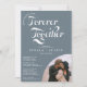 Practicerar för evigt tillsammans! Låt oss vår favoritpars repetitionsnatt före stordagen med den här kalligrafin för vintage av klassisk återgivning och elegant, dinnskript i klassisk elegant, vit på dammblått med ett bågfoto på sidan. När återtro möter modern beröring.