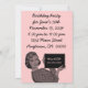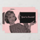 Inbjudningar med en vintage som illustrerar en kvinna på 1950-talet som håller i Urklipp. Anpassa dem med egen text och bakgrund färg. Retro coola!