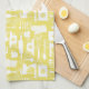Gult Retro Baking kökshandduk med en söt retro stil mönster med bakverk och enkla återblommor i gult och vitt. Du kan göra mönster större eller mindre på kökshandduken.