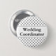 Bröllop samordnare/knapp för återkoppling av planner för bröllop, bröllopsmottagningar och repetitioner. Svart polka-punktdesign.