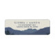 Dessa reträtt till bergen bröllop returetiketter är perfekt för ett modernt bröllop. Utformningen har ett bergsområde med en blå serenblått vattenfärg med en skog av evergreen träd i förgrunden. Köp den storleka returadressetiketten för dina bröllopsinbjudningar och den storleka adressetiketten för dina OSOR. Dessa etiketter kan användas för bröllop, möhippa eller när du behöver en personlig adressetikett.