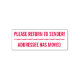 "ÅTERVÄND TILL SENDER!", "ADDRESSEE HAR FLYTTAT" SJÄLVFÄRGANDE STÄMPEL