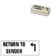 Denna gummidesign i frimärke innehåller meddelandet "RETURN TO SENDER", tillsammans med en pil. Den skulle kunna användas på brev-post som har levererats men för vilken mottagaren är okänd.