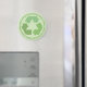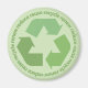 Symbolen Tri-färg grönt återvinna i mitten, med "Minska, återanvända, återvinna, förnya" som omger den.