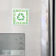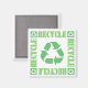 Om du återvinnor så uppmuntrar du andra att göra det också med den här roligten Återvinna magnet. Grönt på vitt med återvinna symbol.