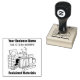 Recreted Materials Business gummi frimärke med en illustration av tecknaden plus ditt företags namn och telefonnummer. Återvunnet material, frimärke.