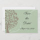 100% återvunnet material efter konsumentbruk för fotosparande "Save the Date"-inbjudningar. (finns även på andra papperstyper). Mjuk, naturlig och naturskön utomhustema med färgnyanser av salviajordnära grönt och mjuk jordbrun. Stilisert modern trädform med flödande vita virvlar i bakgrunden. Vissa produkter finns tillgängliga på återvunna och miljövänliga papper.