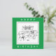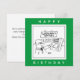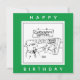 Gardener-födelsedagskort.Man som shoppar på ett Garden Center hittar en "Action Gnome" på hyllan. Lustigt kort för en trädgårdsmästare.