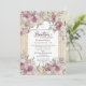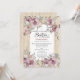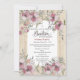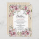 Den Mauve blommigten och löv betonar en naturlig träbakgrund. En understated kor smyckar det bästa av inbjudan.