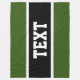 Den här skarpa sportiska designen har ett fet svart vågrät i mitten av rand som skisseras i ett sportiskt vitt streck centrerat vertikalt mellan mörk grönt ränder ovanför och under. Den valfria texten, om den används, bör vara personlig.