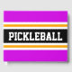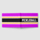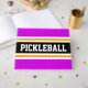 Den här sportiska designen har en atletisk PICKLEBALL-text inuti ett stort svart vågrät i mitten av tävlan rand med intilliggande ljus gyllene gult och vita ränder mot feta yttre ränder i kant. Färg och text i den här utformningen kan vara personlig.