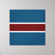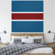 Den här djärva, atletiska designen har en djup röd mittpunkt vågrät rand som skisseras i vita ränder mellan angränsande stora och grund djupa ränder för djuphavsblått havsbotten.