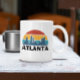 Snyggt och vacker Atlanta Georgia Vintage Sunset-kaffe mugg som visar cityscape med berömd byggnad och landmärken för staden i delstaten Georgia i USA. Fungerar underbart som resande souvenir och även som representant för din stad.