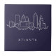 Denna design presenterar en hand plockade skissar av den Atlanta horisonten på en purpurfärgad bakgrund.