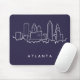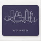 Denna design presenterar en hand plockade skissar av den Atlanta horisonten på en purpurfärgad bakgrund.