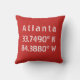 Latitud- och longitudkoordinater för Atlanta, GA i modernt vitt industriteckensnitt på röd bakgrund.
