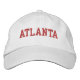 Atlanta Red embroidery på vit bomullshatt. Gör en underbar gåva till vem som helst som kärlek Atlanta GA! Om du vill ha din egen text väljer du bara knappen Anpassa den här mallen för att ange anpassningsbar. Med kommandot Redigera design i verktyg väljer du även anpassade till andra färg-alternativ. Du kan också välja färg på huvudobjektssidan.