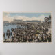 Atlantic City, NJ - Helgdag Crowd vid stranden Poster