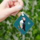 Med den här söta puffin-nyckelringen lägger du till en liten pekpenna till din dag. Nyckelring bilder och atlantisk puffin, mot en rik mörk-turkobakgrunden. Genom att fånga karaktären hos denna ikoniska sjöfågel är denna vackra nyckelring en fullt av kustkarm. Anpassa med en inledande del för den avslutande beröringen. En idealisk gåva till fågel älskare och alla tittar för havets vildlevande arv.